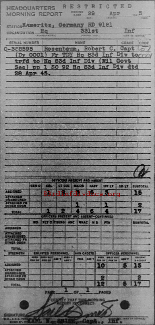 Morning report HQ/331 for April 29, 1945