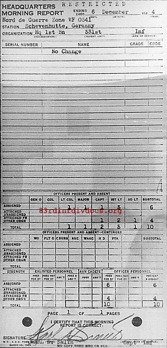 Morning report HQ1BN/331 for December 6, 1944