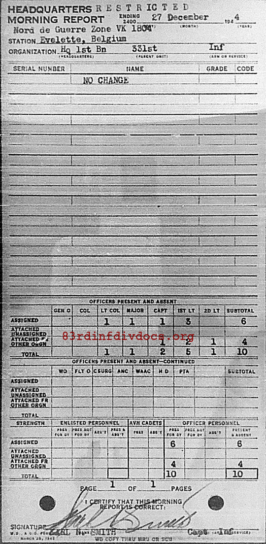 Morning report HQ1BN/331 for December 27, 1944