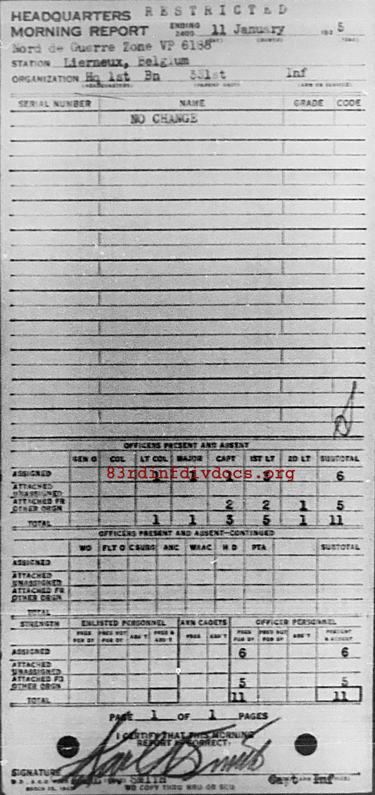 Morning report HQ1BN/331 for January 11, 1945