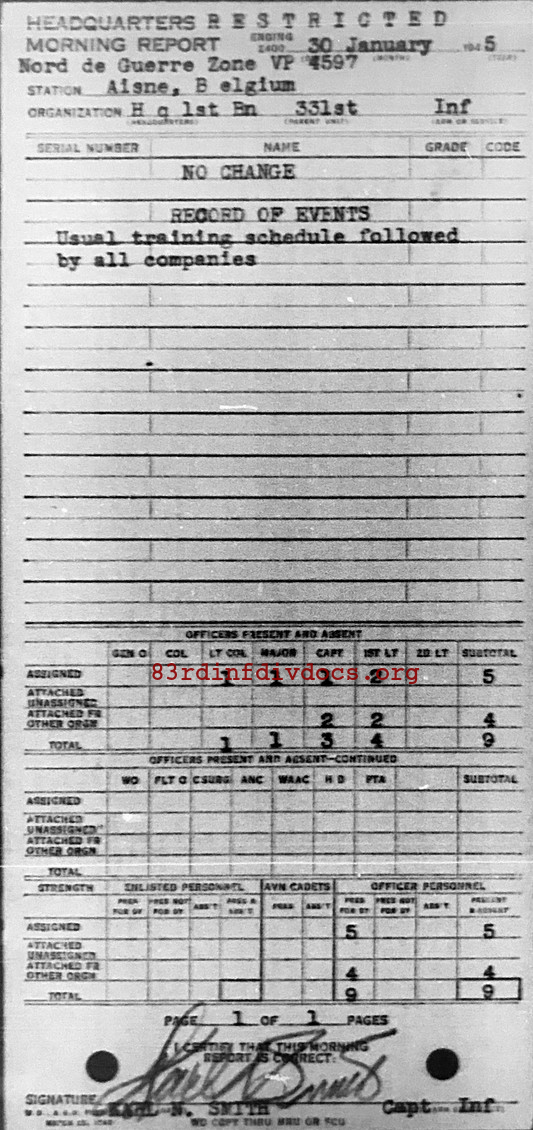 Morning report HQ1BN/331 for January 30, 1945
