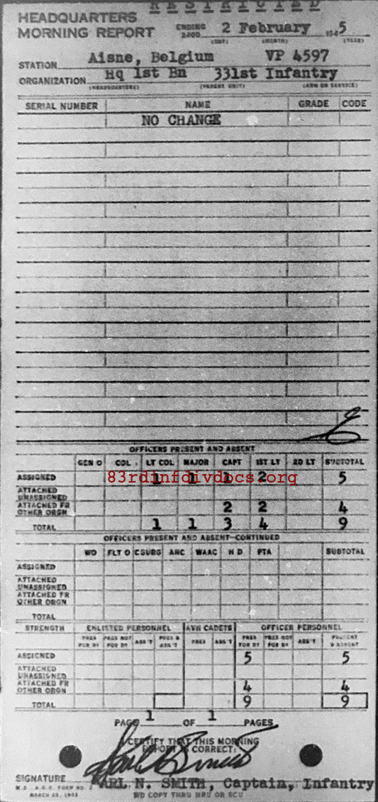 Morning report HQ1BN/331 for February 2, 1945