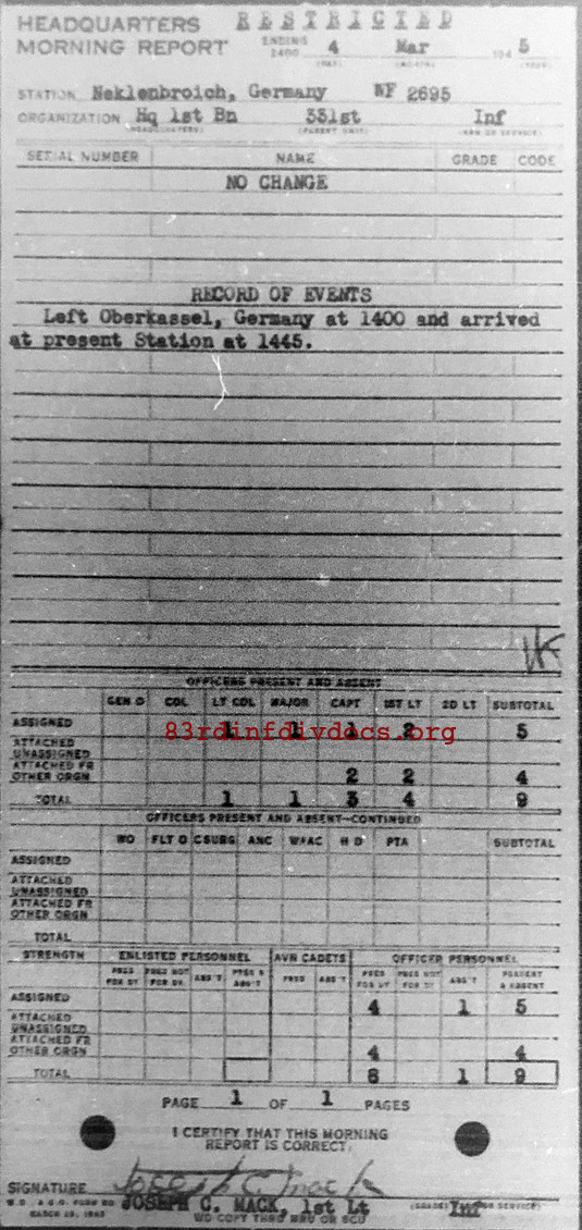 Morning report HQ1BN/331 for March 4, 1945