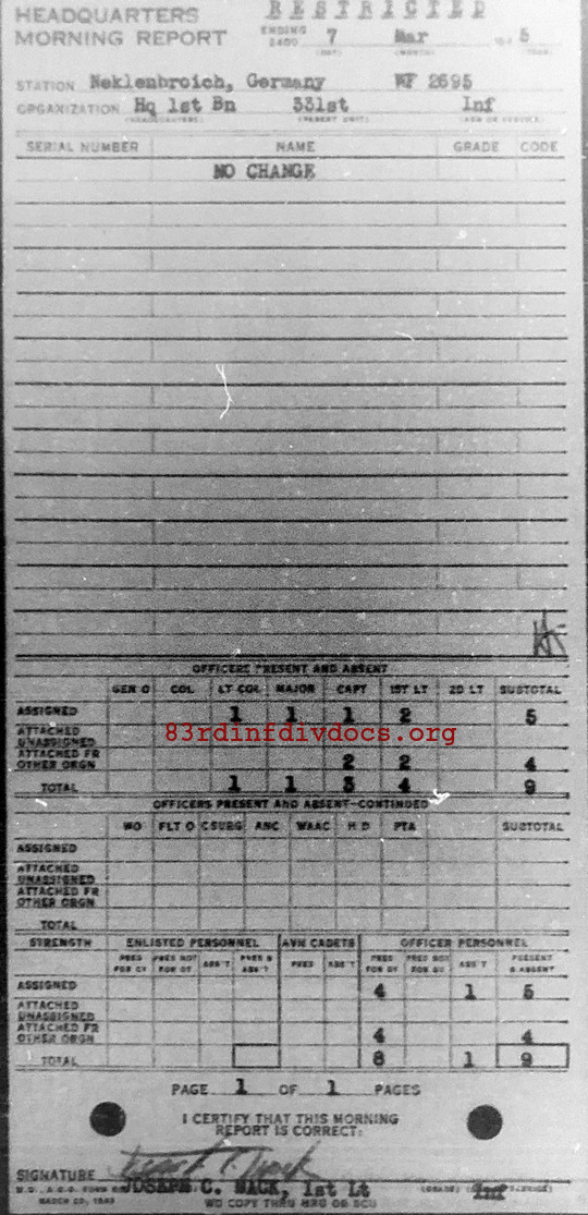 Morning report HQ1BN/331 for March 7, 1945