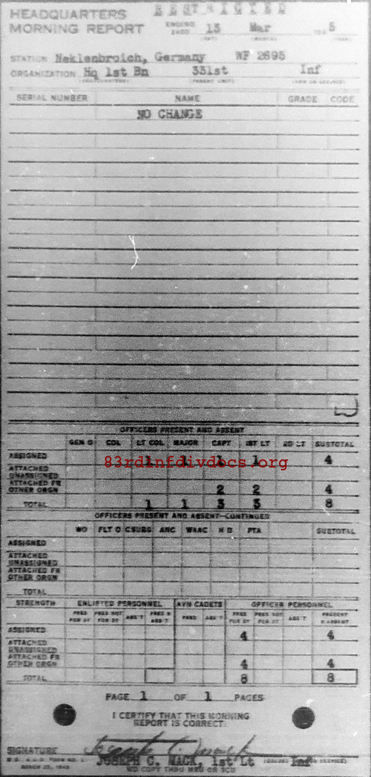 Morning report HQ1BN/331 for March 13, 1945