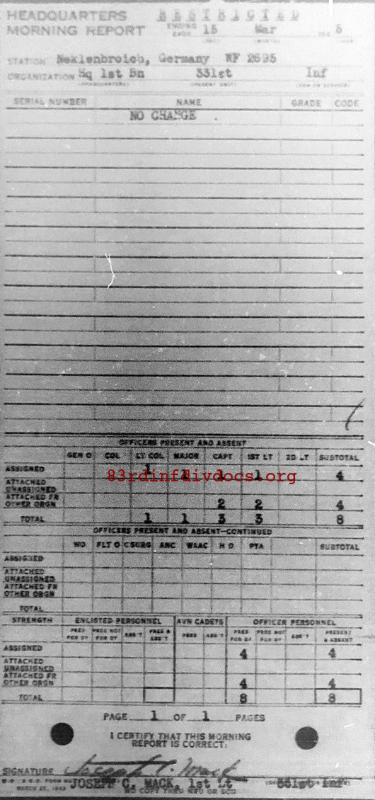 Morning report HQ1BN/331 for March 15, 1945