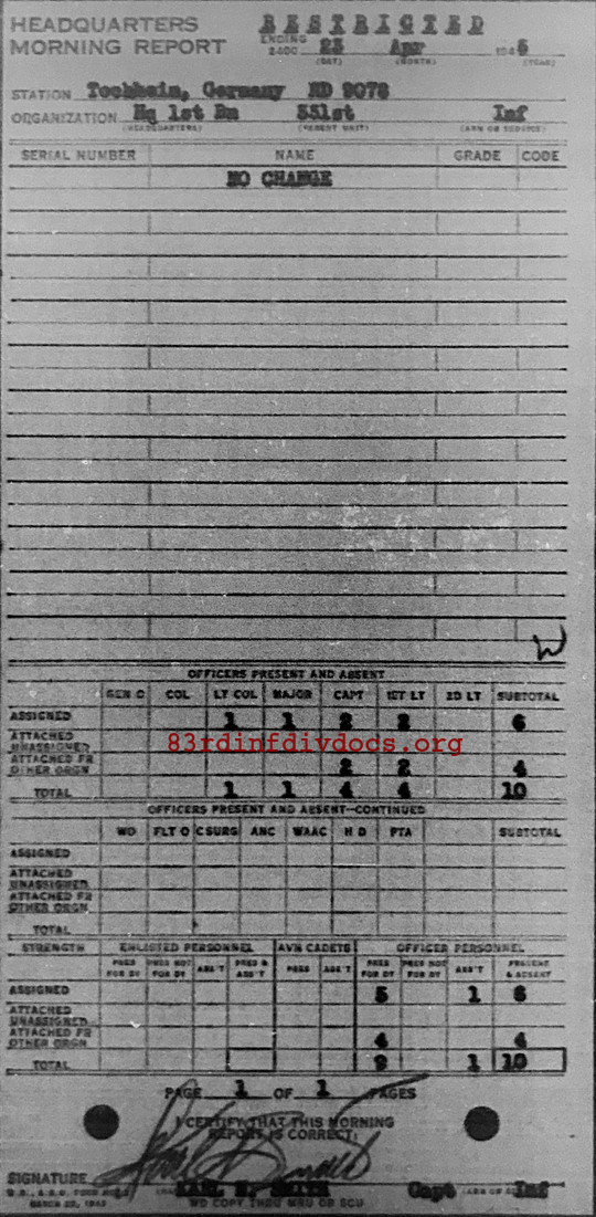 Morning report HQ1BN/331 for April 23, 1945