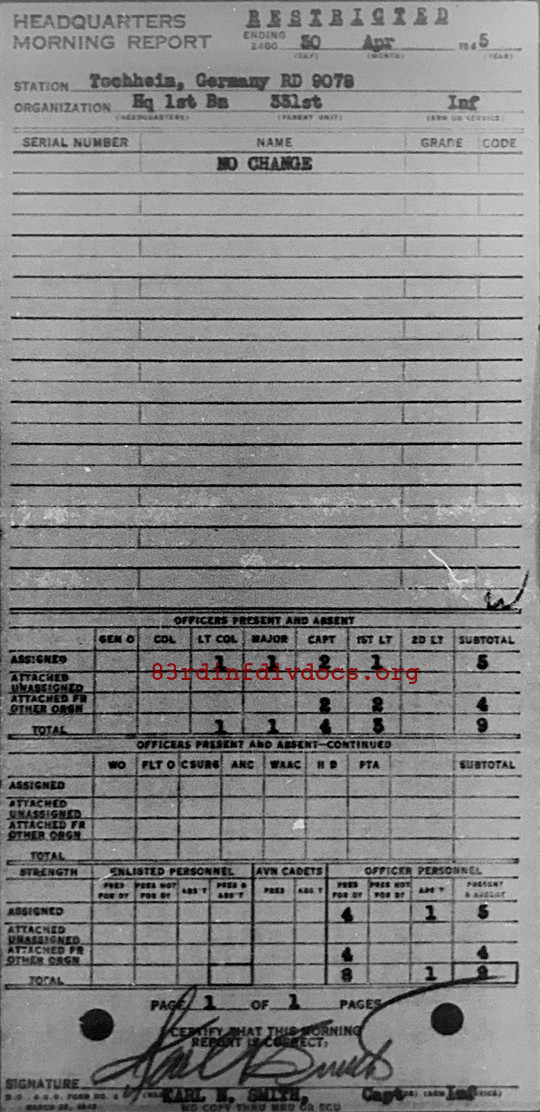 Morning report HQ1BN/331 for April 30, 1945