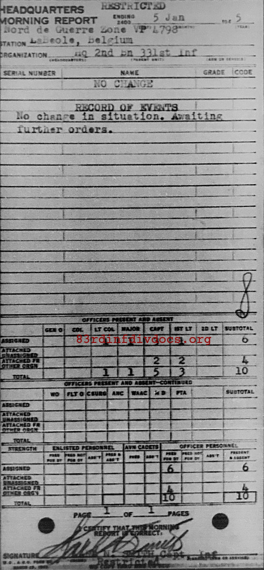 Morning report HQ2BN/331 for January 5, 1945