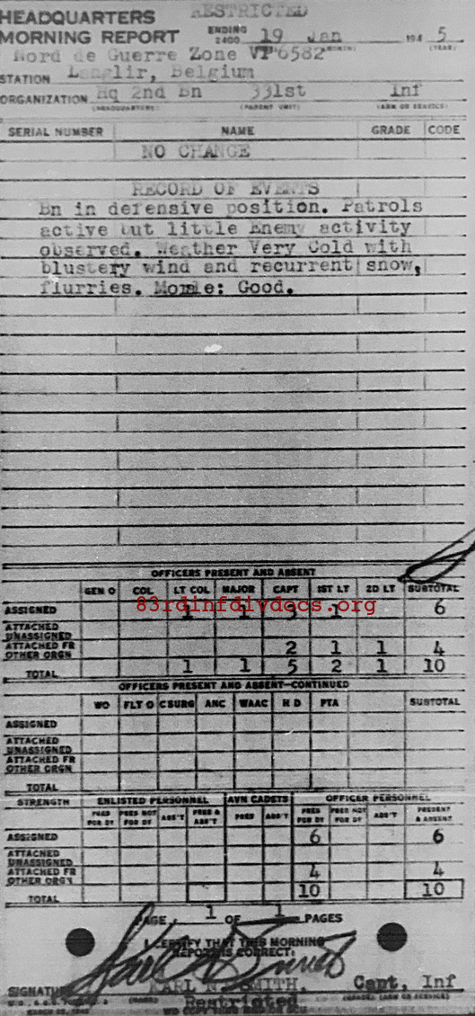 Morning report HQ2BN/331 for January 19, 1945