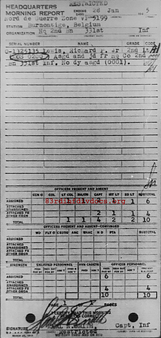 Morning report HQ2BN/331 for January 28, 1945