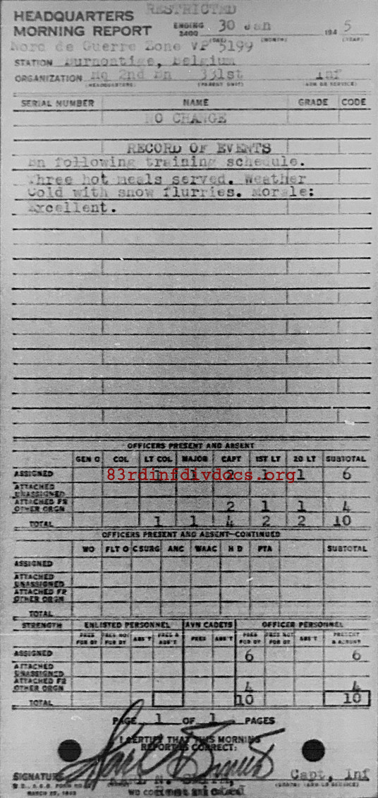 Morning report HQ2BN/331 for January 30, 1945