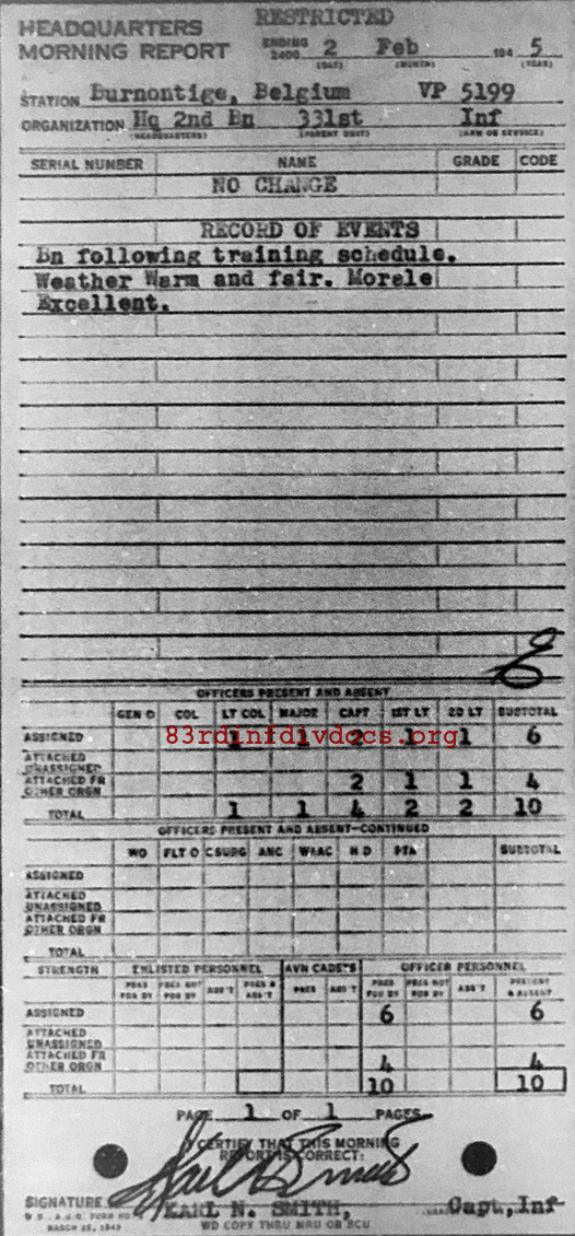 Morning report HQ2BN/331 for February 2, 1945