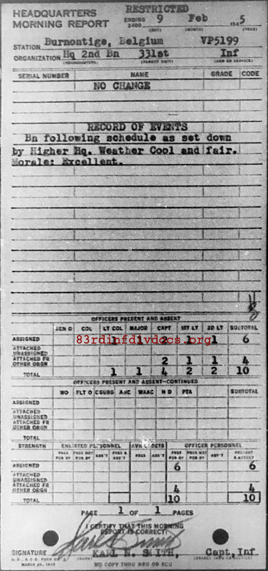 Morning report HQ2BN/331 for February 9, 1945