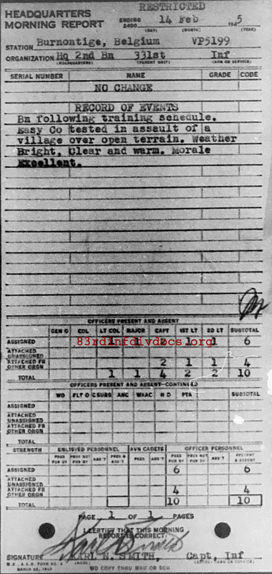 Morning report HQ2BN/331 for February 14, 1945