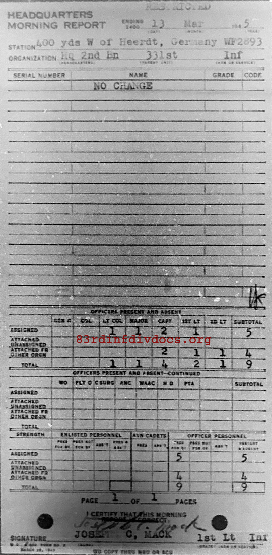 Morning report HQ2BN/331 for March 13, 1945