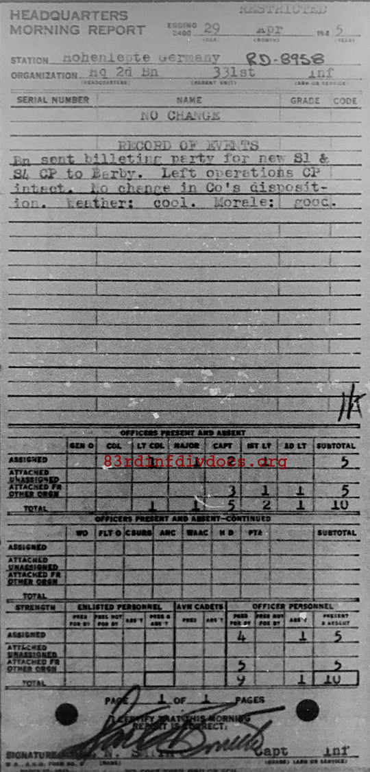 Morning report HQ2BN/331 for April 29, 1945