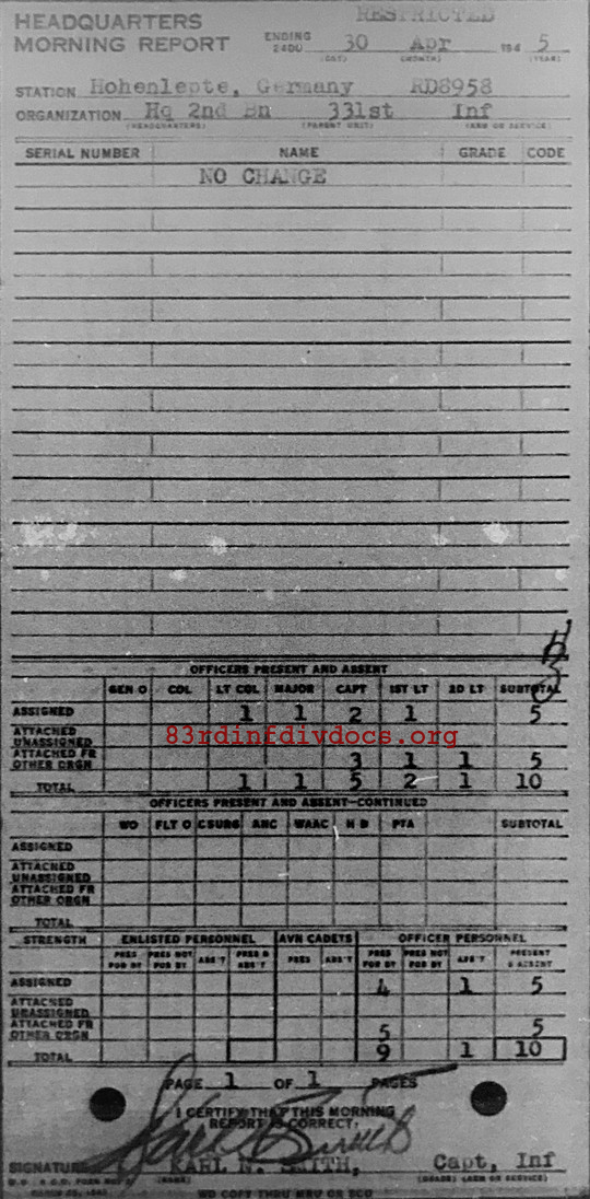 Morning report HQ2BN/331 for April 30, 1945