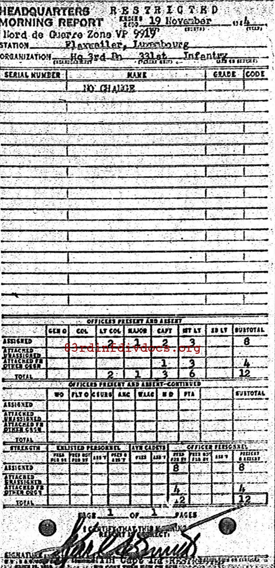 Morning report HQ3BN/331 for November 19, 1944