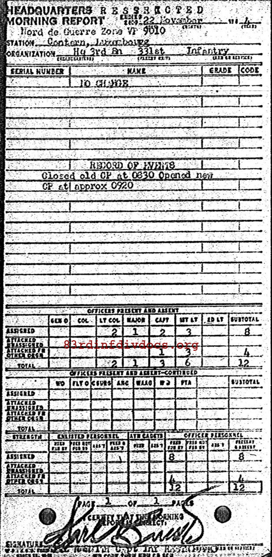 Morning report HQ3BN/331 for November 22, 1944