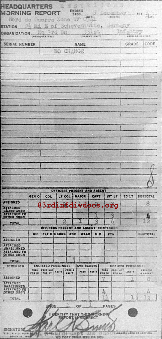 Morning report HQ3BN/331 for December 9, 1944