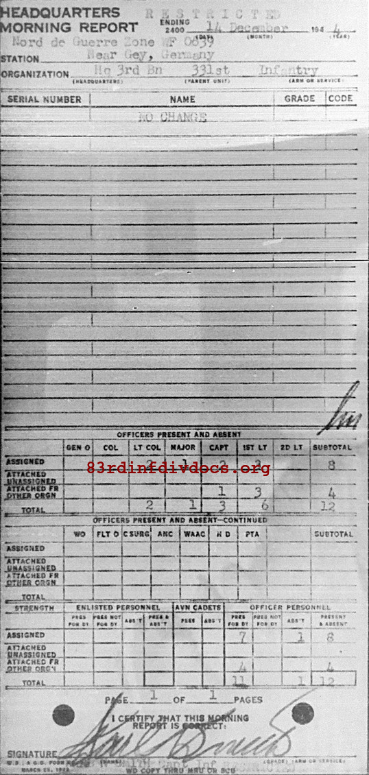 Morning report HQ3BN/331 for December 14, 1944