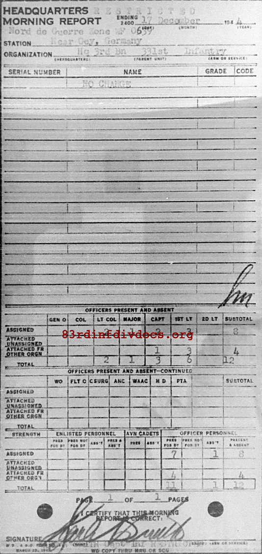 Morning report HQ3BN/331 for December 17, 1944