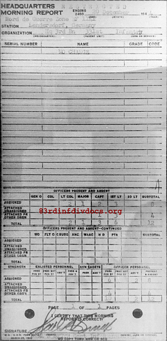 Morning report HQ3BN/331 for December 20, 1944