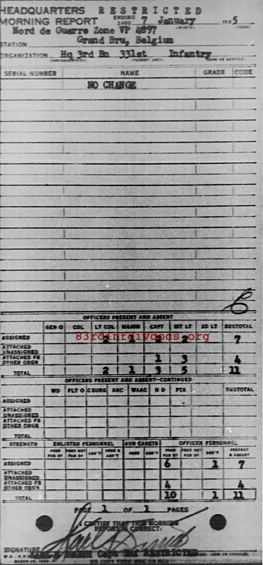 Morning report HQ3BN/331 for January 7, 1945