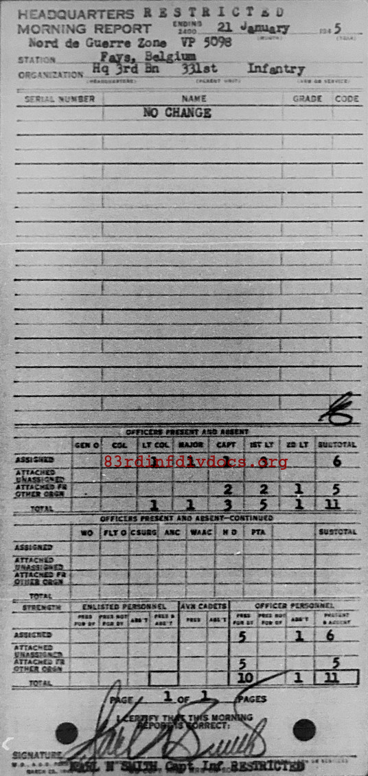 Morning report HQ3BN/331 for January 21, 1945
