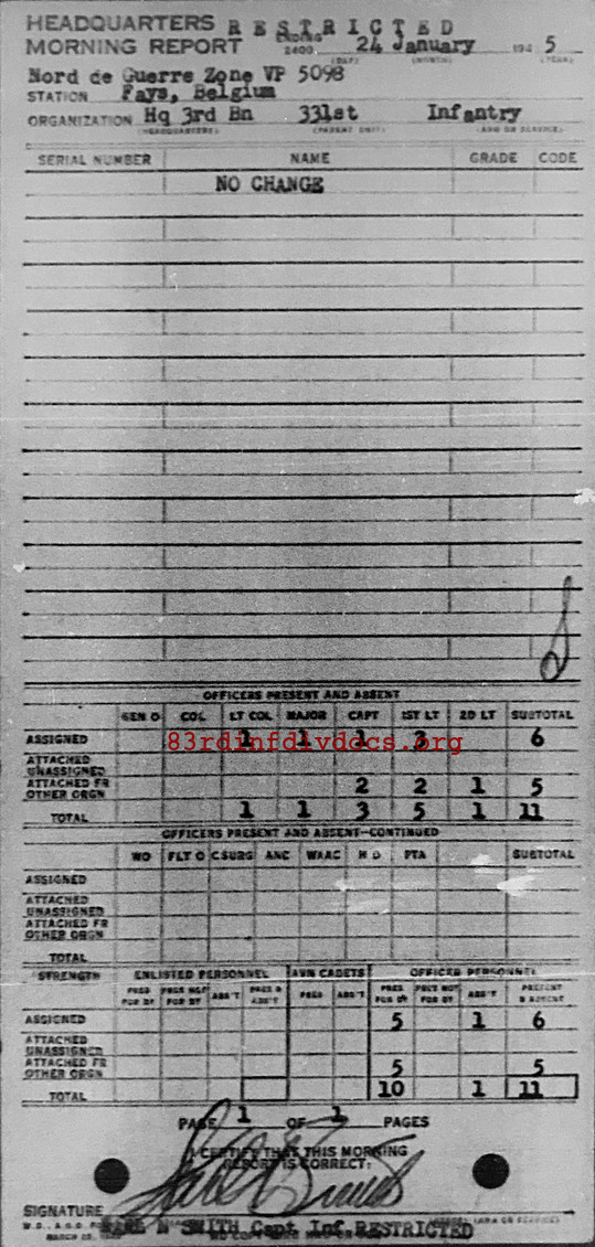 Morning report HQ3BN/331 for January 24, 1945