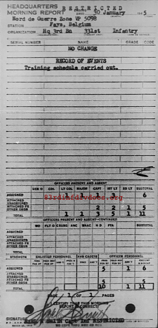 Morning report HQ3BN/331 for January 30, 1945