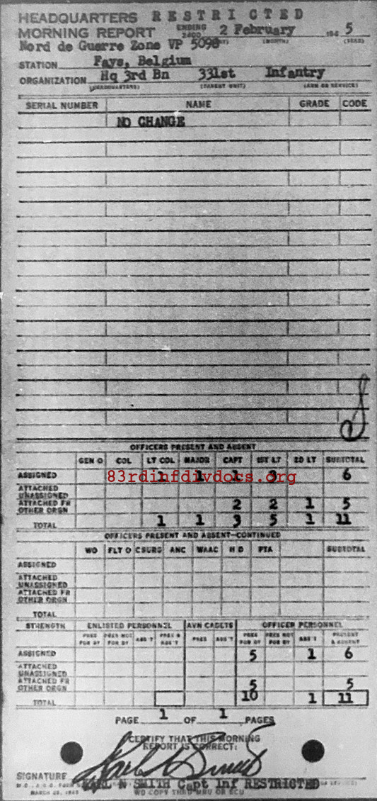 Morning report HQ3BN/331 for February 2, 1945