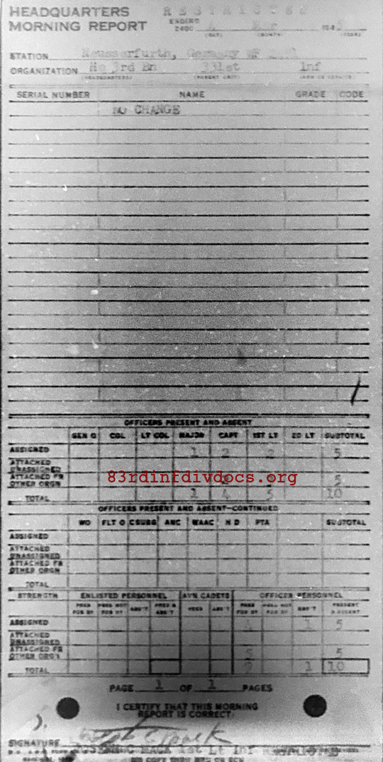 Morning report HQ3BN/331 for March 4, 1945