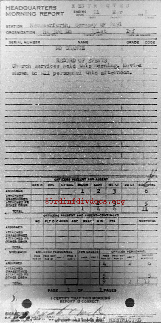 Morning report HQ3BN/331 for March 11, 1945