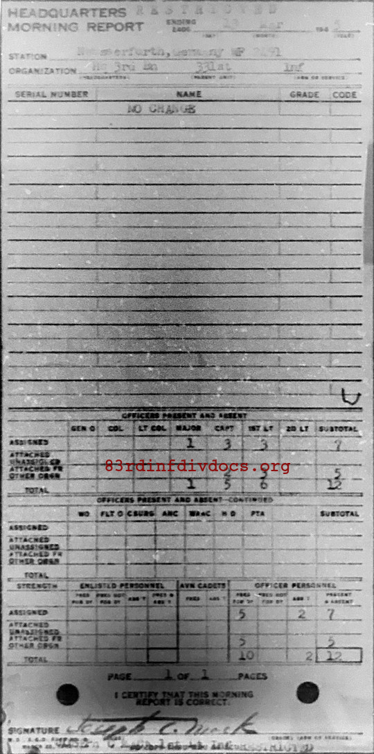Morning report HQ3BN/331 for March 13, 1945