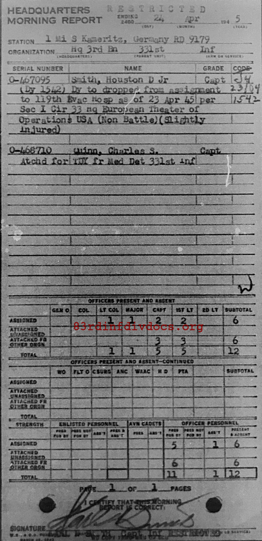 Morning report HQ3BN/331 for April 24, 1945