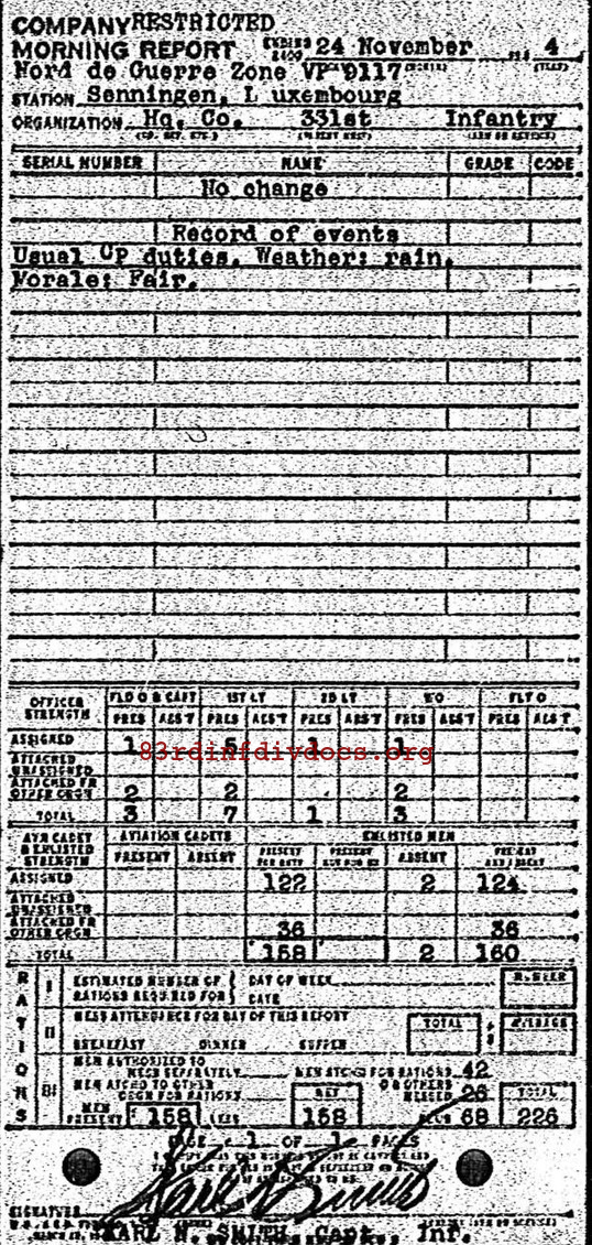 Morning report HQCO/331 for November 24, 1944
