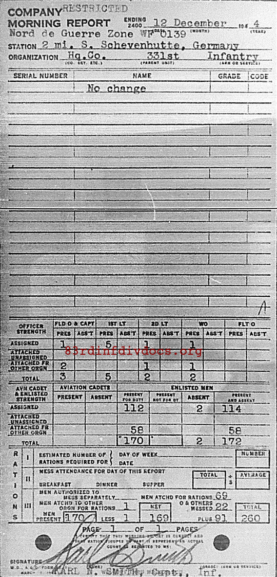 Morning report HQCO/331 for December 12, 1944