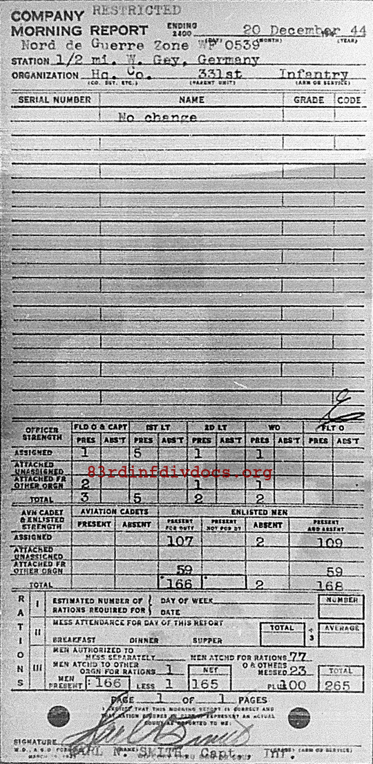 Morning report HQCO/331 for December 20, 1944