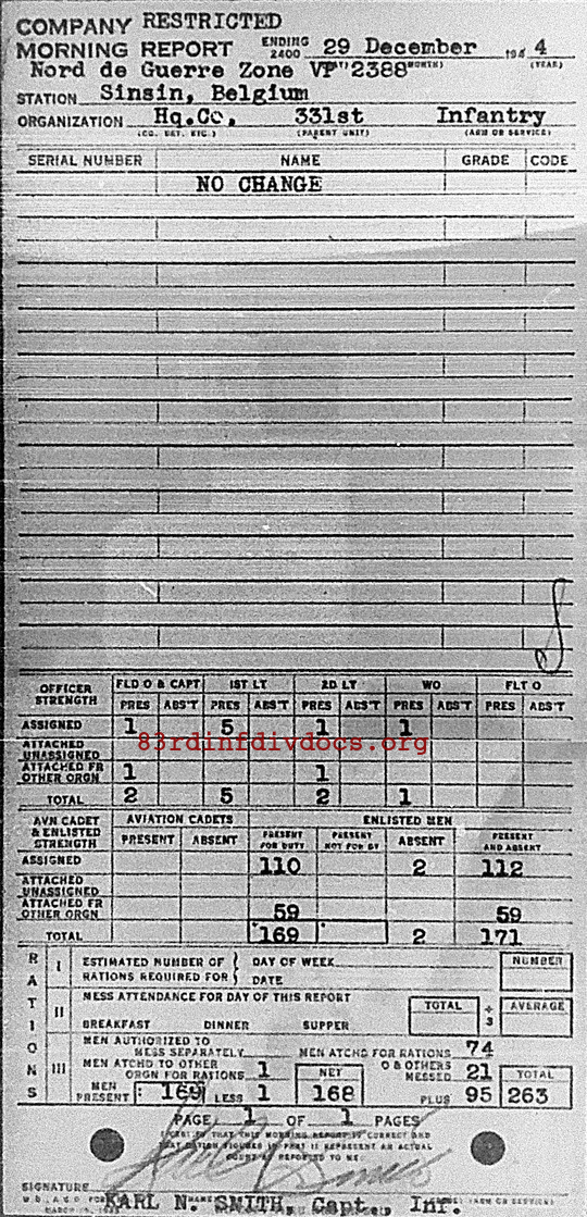 Morning report HQCO/331 for December 29, 1944