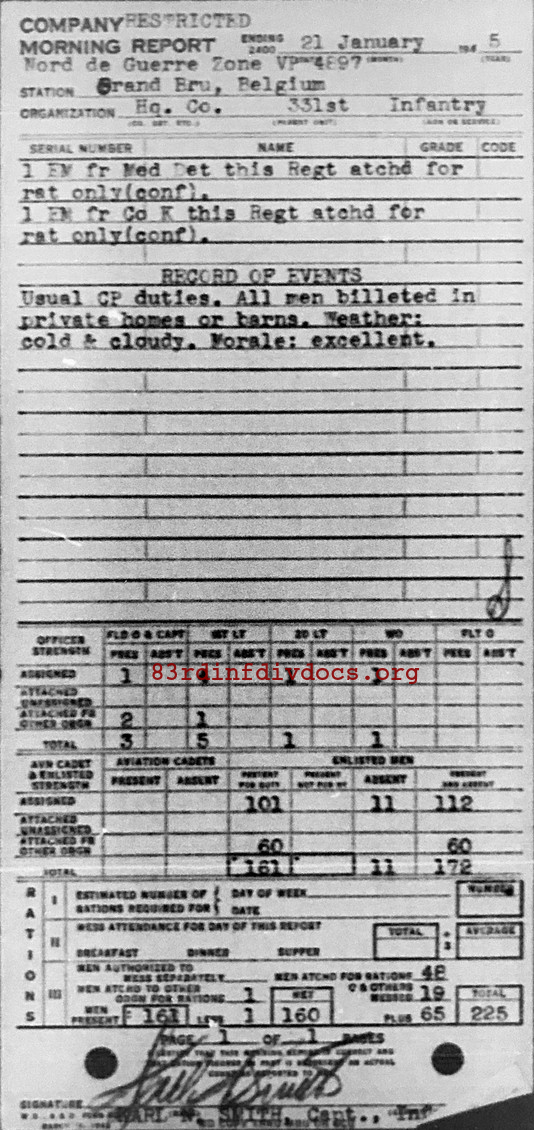 Morning report HQCO/331 for January 21, 1945