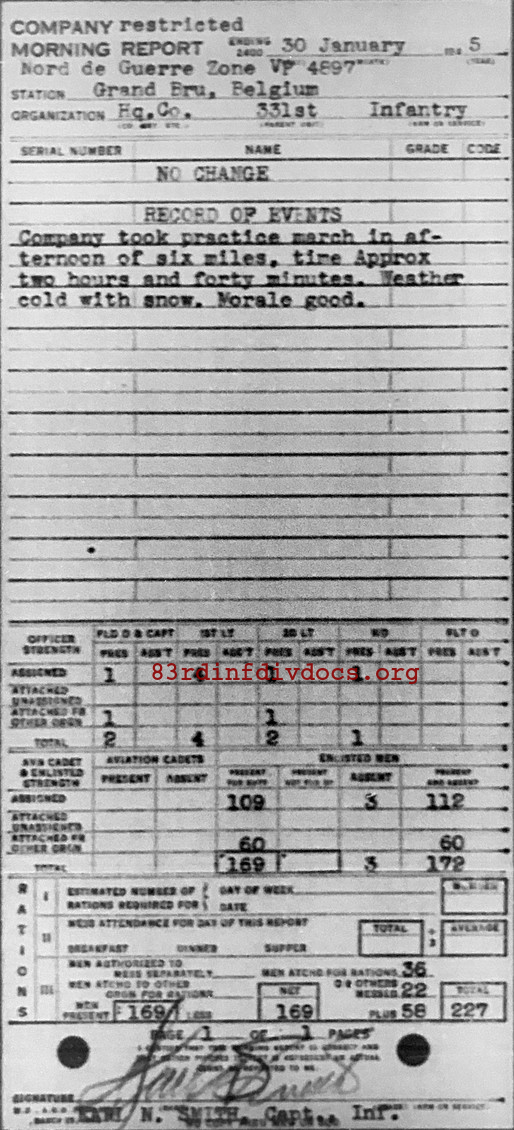 Morning report HQCO/331 for January 30, 1945