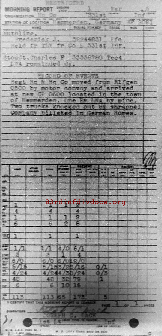 Morning report HQCO/331 for March 1, 1945