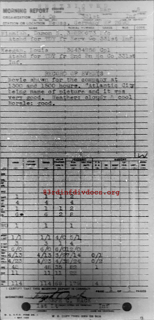 Morning report HQCO/331 for March 12, 1945