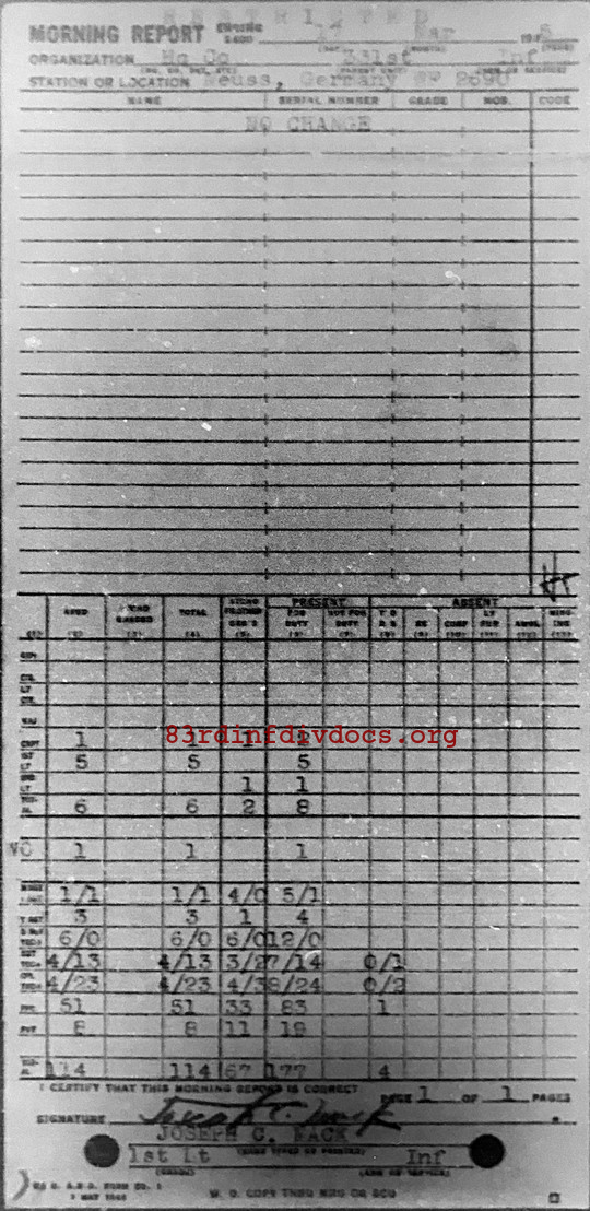 Morning report HQCO/331 for March 17, 1945