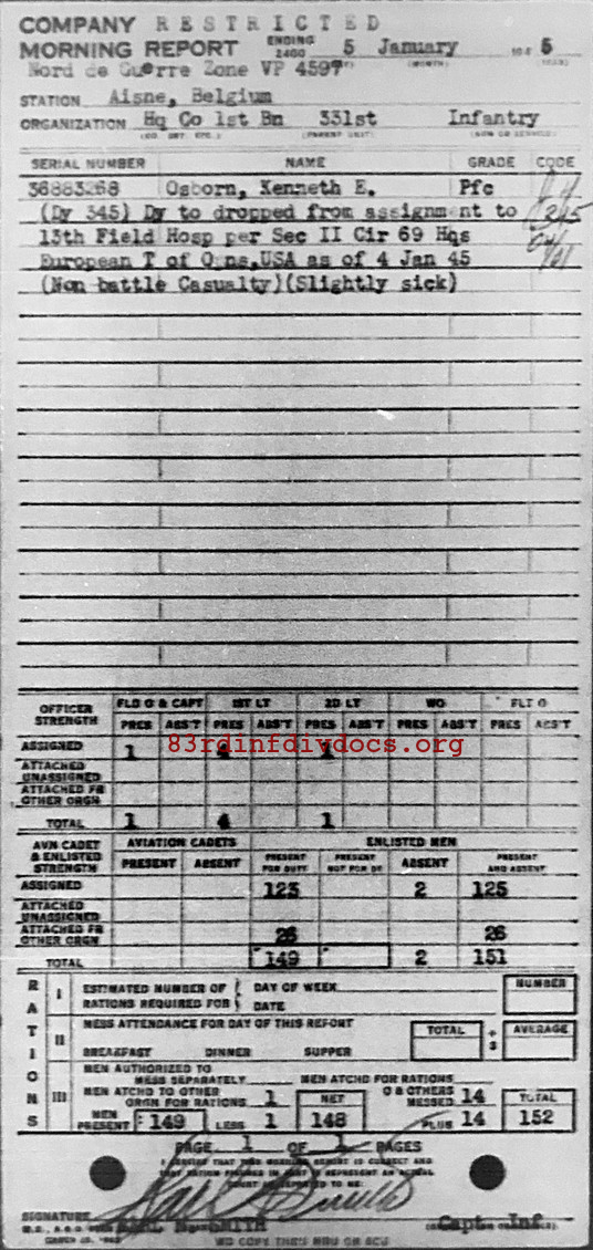 Morning report HQCO1BN/331 for January 5, 1945