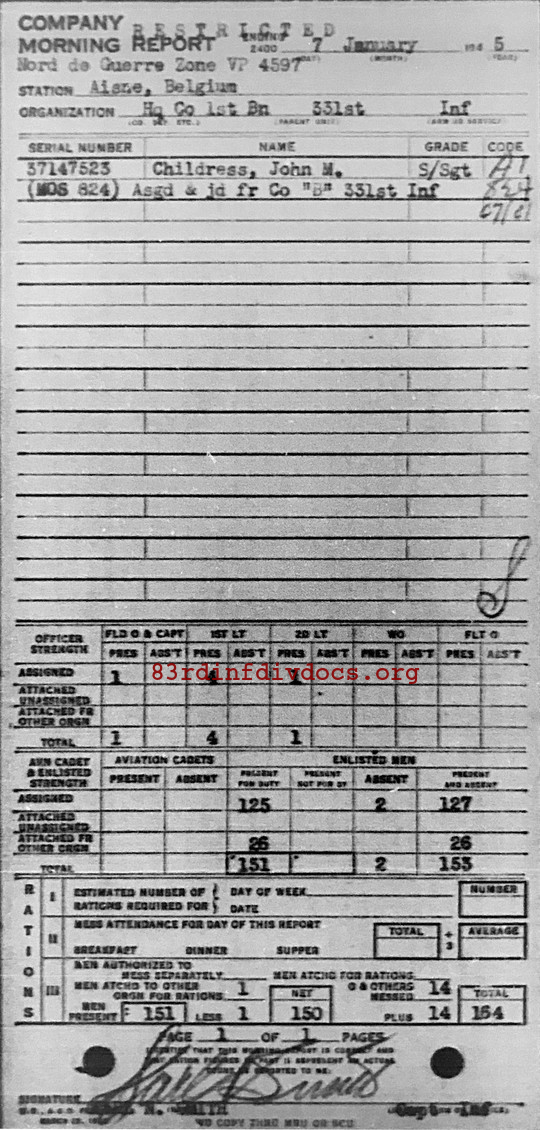 Morning report HQCO1BN/331 for January 7, 1945
