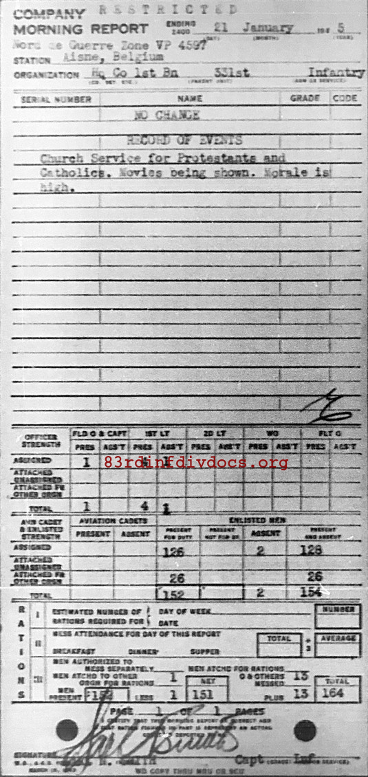 Morning report HQCO1BN/331 for January 21, 1945