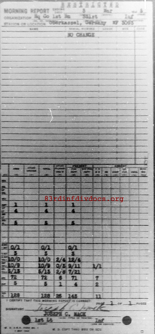 Morning report HQCO1BN/331 for March 3, 1945